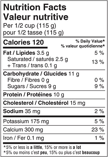 Taille des portions : ½ tasse (115 g)